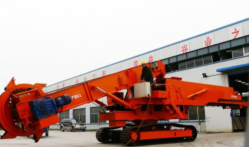 利用斗輪連續(xù)取料,用機(jī)上的帶式輸送機(jī)連續(xù)堆料的有軌式裝卸機(jī)械。它是散狀物料(散料)儲(chǔ)料場(chǎng)內(nèi)的專用機(jī)械,是在斗輪挖掘機(jī)的基礎(chǔ)上演變而來的,可與卸車(船)機(jī)、帶式輸送機(jī)、裝船(車)機(jī)組成儲(chǔ)料場(chǎng)運(yùn)輸機(jī)械化系統(tǒng),生產(chǎn)能力每小時(shí)可達(dá)1千立方。斗輪堆取料機(jī)的作業(yè)有很強(qiáng)的規(guī)律性,易實(shí)現(xiàn)自動(dòng)化。控制方式有手動(dòng)、半自動(dòng)和自動(dòng)等。